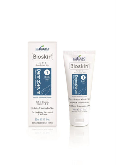 A beautiful, gentle and light face serum, which can be used on a daily basis to ensure a deeply hydrated and nourished skin. Especially for people who are known to have dry to very dry skin, this nutrient-rich serum will make your skin feel more balanced and healthy. Bioskin Dermaserum can be used on the more sensitive areas of the face, around the eyes and the mouth.