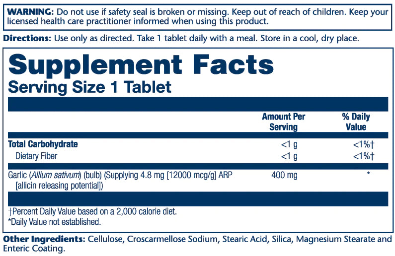 Plus, each tablet is enteric coated, ensuring you enjoy all the benefits without worrying about garlic breath.